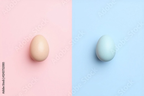 © He, Fototapeta premium two Easter eggs one pink one blue different backgrounds