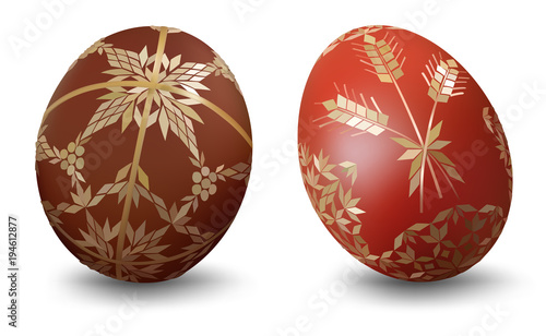 © Roman Dekan, Fototapeta premium Two Easter Eggs with Ornamental Pattern on White Background - Detailed Illustration, Vector