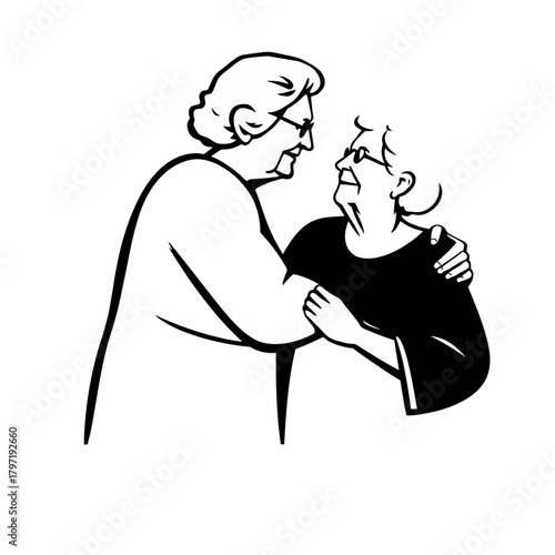 Fototapeta premium Two elderly women embracing, sharing a moment of affection and support,...