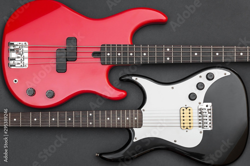 © igorkol_ter, Fototapeta premium Two electric guitar on black background.