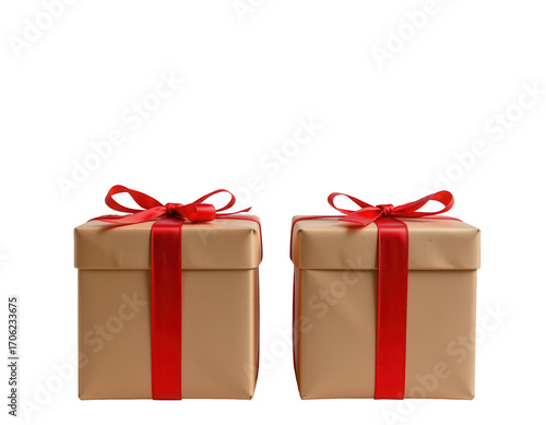 © K-MookPan, Obraz premium Two elegant gift boxes with red ribbons on a Transparent background