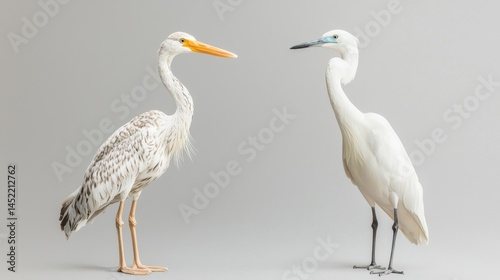 © Aris Suwanmalee, Obraz premium Two elegant herons stand side by side against a neutral background, showcasing nature's beauty.