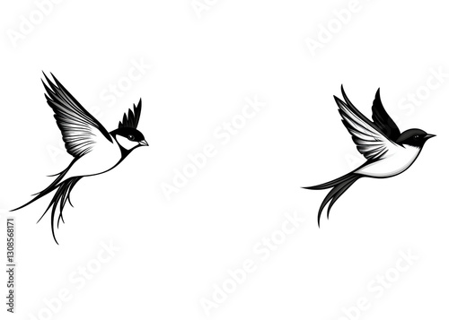 Obraz premium Two elegant, stylized birds in flight, showcasing graceful movement and...