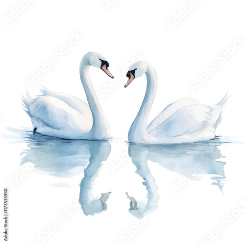 Obraz premium Two elegant swans swimming gracefully side by side, their reflections...
