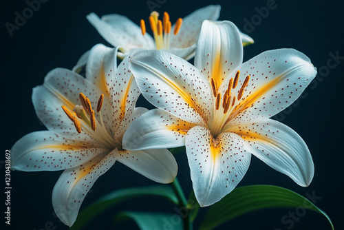 © Socitysh, Obraz premium Two Elegant White Lilies with Red Spots