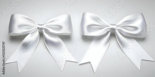 © Siasart Studio, Naklejka premium Two Elegant White Satin Bows Tied with Precision on a Light Gray Background, Perfect for Festive Decoration or Gift Wrapping