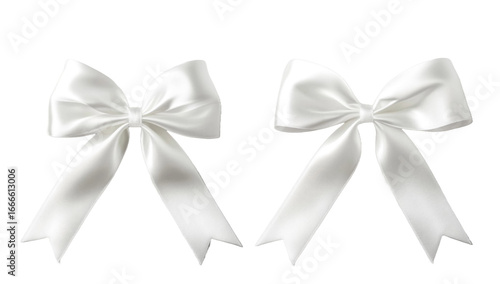 © JEMEE, Naklejka premium Two elegant white silk ribbon bows isolated on transparent background for decoration