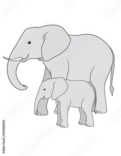 © Pemain, Fototapeta premium Two elephants, one large and one small, side by side