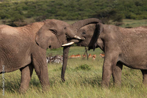 Fototapeta premium two elephants playing on the savanah