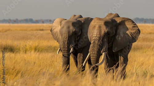 © Molang Visual, Obraz premium Two elephants walking through the tall grass in the African savanna