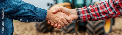 Fototapeta premium Two farmers shaking hands in a field, symbolizing partnership and collaboration in agriculture