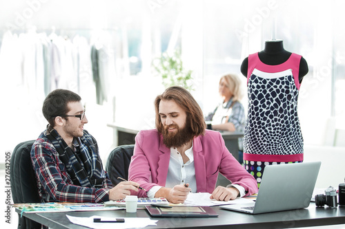 Fototapeta premium two fellow designers sitting at a Desk in the Studio