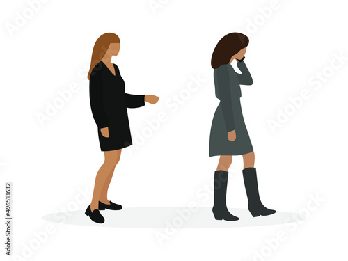 Fototapeta premium Two female characters, one of which is talking on the phone, together on a...