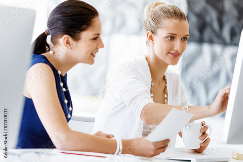 © Sergey Nivens, Fototapeta premium Two female colleagues in office