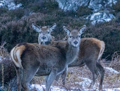 © Sarah, Fototapeta premium Two female red deer looking at the camera