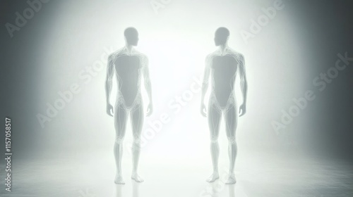 © Aris Suwanmalee, Obraz premium Two figures in a serene, luminous space.