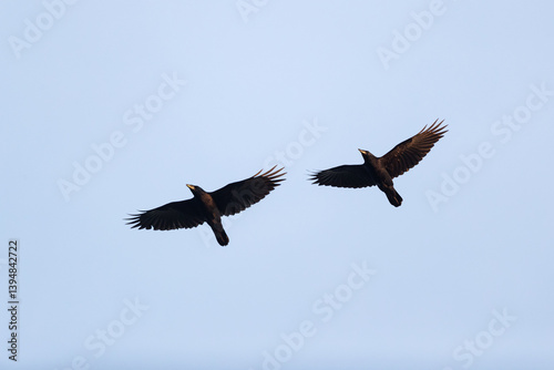 Obraz premium two first calendar year rook (corvus frugilegus) on their first migration to...