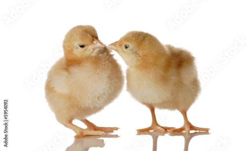 © Ljupco Smokovski, Fototapeta premium Two fluffy baby chicken isolated against white background