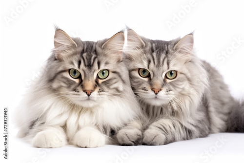 Fototapeta premium Two fluffy longhair cats isolated on a white background