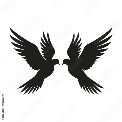 © Ramesh, Fototapeta premium Two Flying Pigeons Black Silhouette Vector