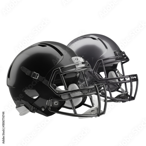 Naklejka premium Two football helmets for sport protection on transparent background