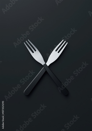 © GATE 22, Fototapeta premium Two forks are crossed over each other on a black background