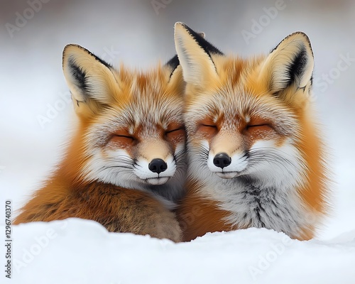 © pradnyana, Fototapeta premium Two foxes cuddling in snow