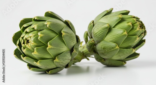 © Burak, Obraz premium Two Fresh Artichokes on White Background
