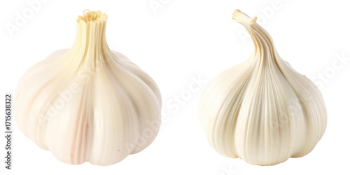 © MST. Anjumanara, Obraz premium Two fresh garlic bulbs arranged side by side against black backdrop on transparent background