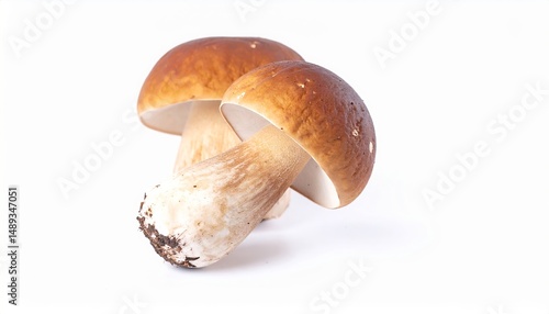 © platobanpo, Fototapeta premium Two Fresh Porcini Mushrooms Isolated on White Background Perfect for Culinary and Gourmet Food Images