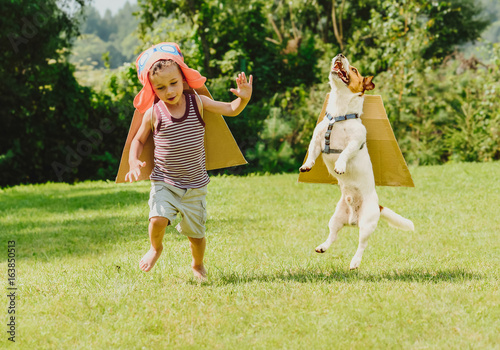 © alexei_tm, Obraz premium Two friends playing high flyers with cardboard wings