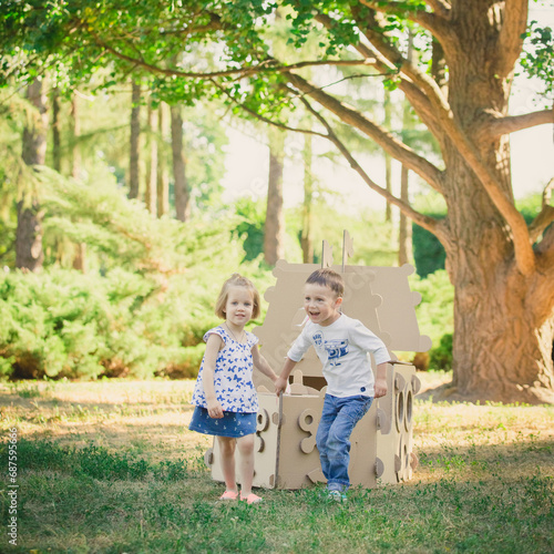 © sarymsakov.com, Fototapeta premium Two funny kids are playing