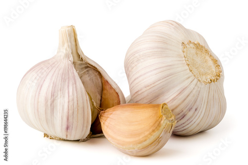 © innafoto2017, Obraz premium Two garlic heads on a white background.
