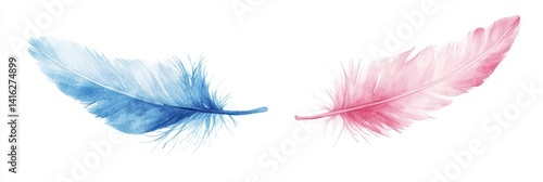 Obraz premium Two Gentle Feathers, Blue and Pink