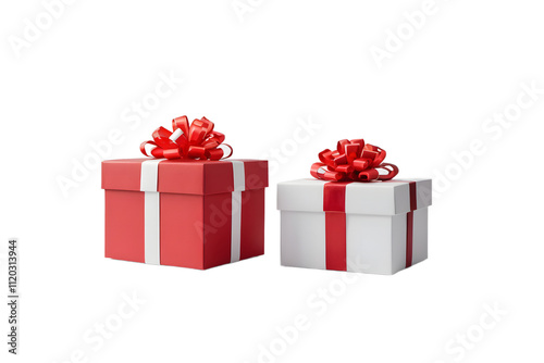 Obraz premium Two Gift Boxes with Red Ribbons on Transparent Background