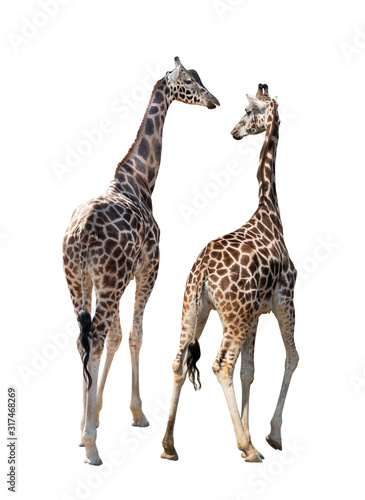 Obraz premium two Giraffe isolated on a white background.