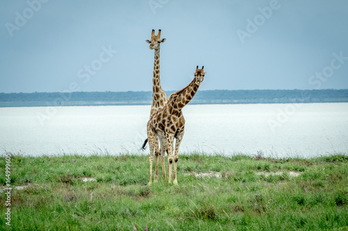 © simoneemanphoto, Obraz premium Two Giraffes standing in the grass.