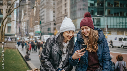 Fototapeta premium Two girls on a sightseeing tour to New York City