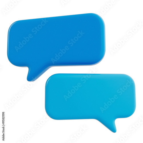 © Mudha Studio, Naklejka premium Two glossy, 3D blue speech bubbles on a black background, one darker, one lighter, overlapping diagonally.