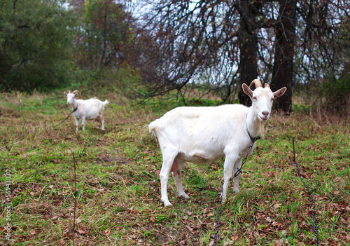 © fieryphoenix, Obraz premium two goats graze in the meadow in autumn