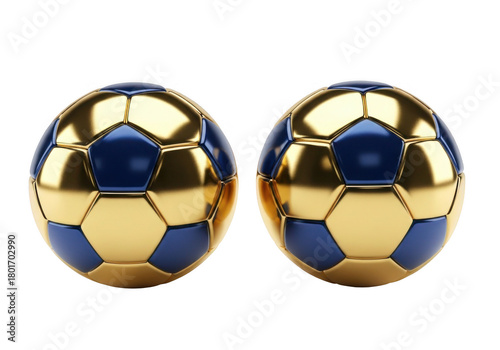 © Sejjil, Naklejka premium Two golden and blue soccer balls isolated on transparent background for sports and awards