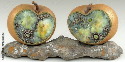 © Mhammad, Fototapeta premium Two golden apples, intricate inner designs