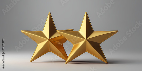 Obraz premium Two golden stars overlapping on a gray surface viewed from a slightly...