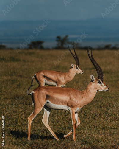 Naklejka premium Two Grant's gazelles stride across Kenyan grassland