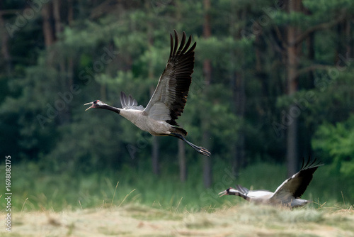 © tan4ikk, Fototapeta premium Two Gray Cranes In Field