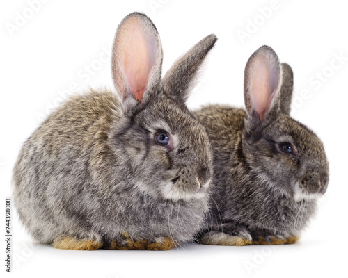 Obraz premium Two gray rabbits isolated