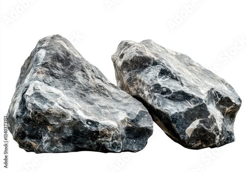 Naklejka premium Two Gray Rocks with Rough Texture on White Background