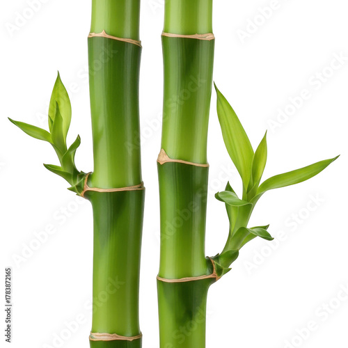Obraz premium Two green bamboo stalks with new leaves isolated on transparent background