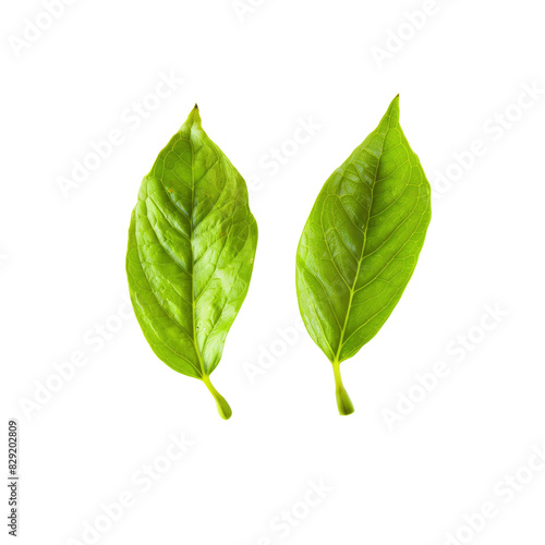 © HKTArt4U, Obraz premium Two Green Leaves Against, Isolated On Transparent Background, For Design And Printing