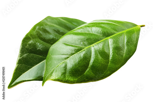 © PixMarket, Fototapeta premium Two green leaves isolated on transparent background